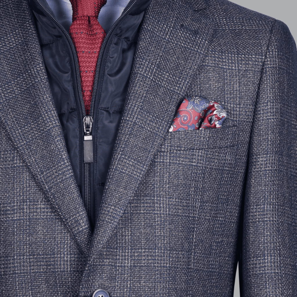 Pecherín Técnico Desmontable: Un chaleco interior acolchado con cierre de cremallera que ofrece una barrera térmica superior, permitiendo una transición fluida entre exteriores e interiores sin perder la elegancia.